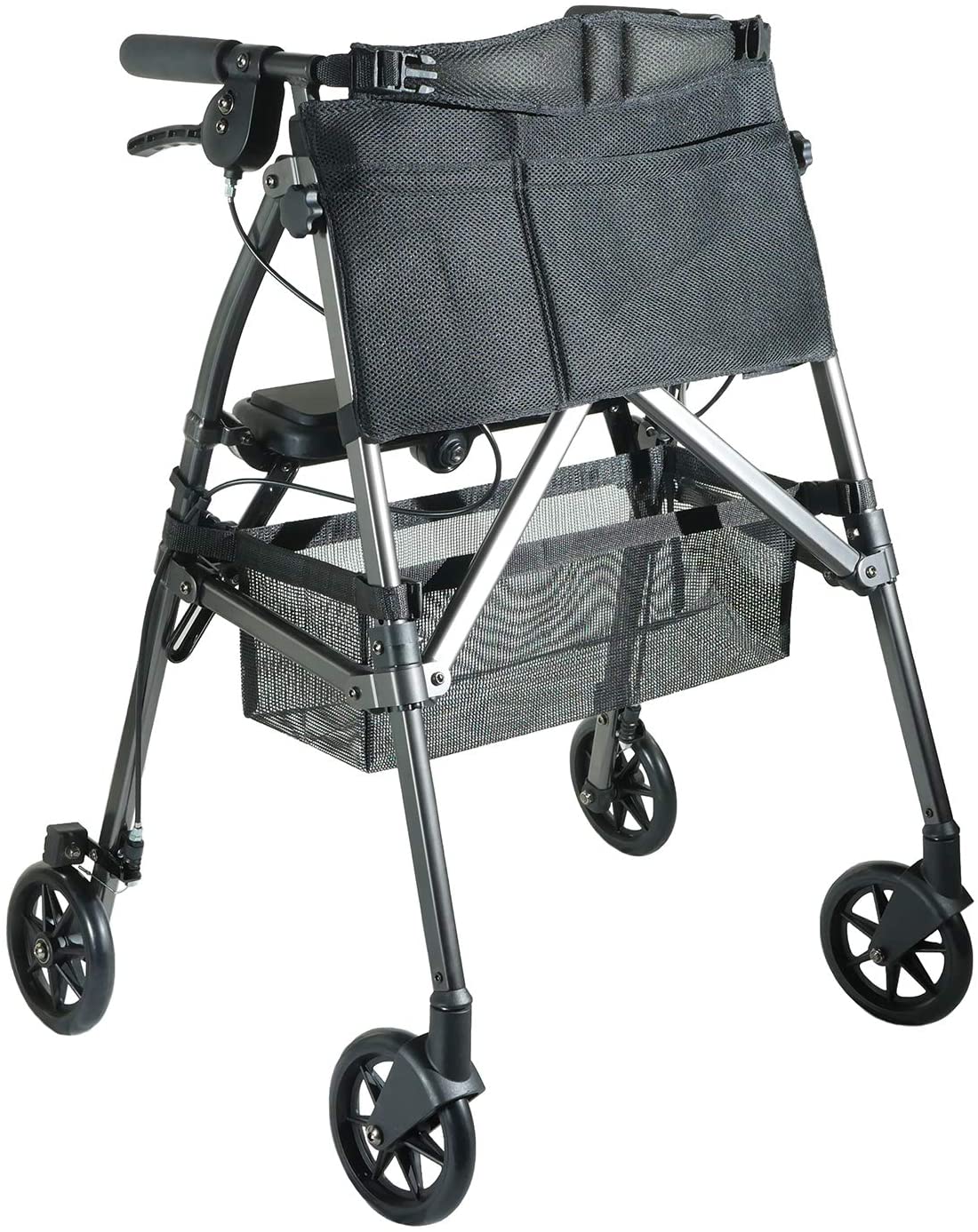 Les poignées sont ajustables entre 84 cm (33″) et 91 cm (36″), permettant d’adapter la hauteur du déambulateur selon la taille de l’usager. Le cadre est conçu pour supporter jusqu’à 113 kg (250 lb).